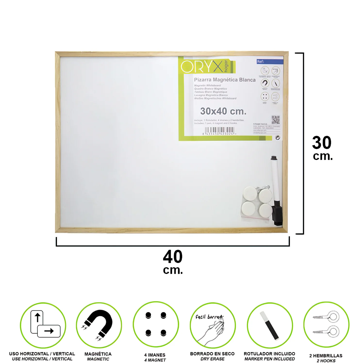 Pizarra Magnetica Blanca 30×40 cm. Con Rotulador y 4 Imánes